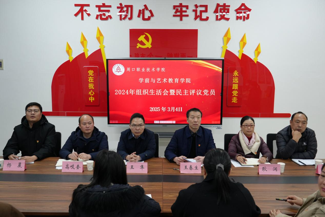 为巩固深化党纪学习教育成果,进一步加强党组织建设,提升党员思想政治素质,增强党组织的凝聚力和战斗力。3月4日下午,学前与艺术教育学院(纺织服装学院)党总支在四楼党员活动室召开2024年度组织生活会暨民主评议党员会议,周口职业技术学院副校长王隼以普通党员身份参加会议,学院党总支全体党员参加会议。会议由党总支书记王春生主持。