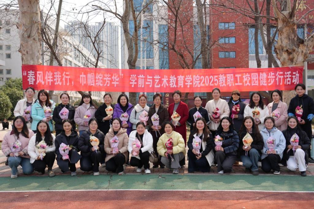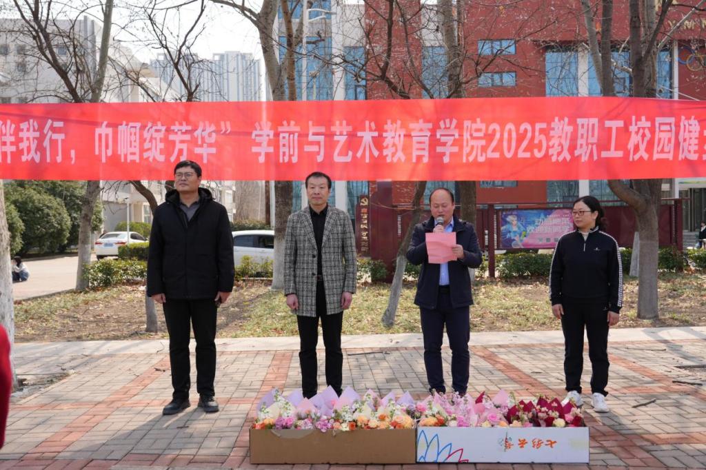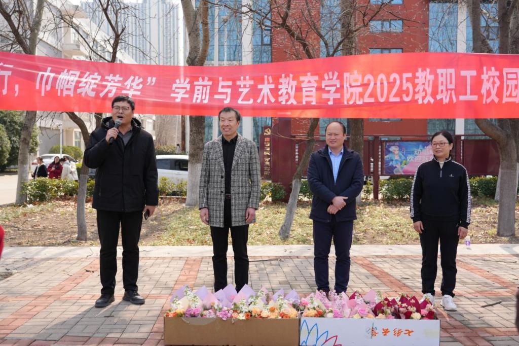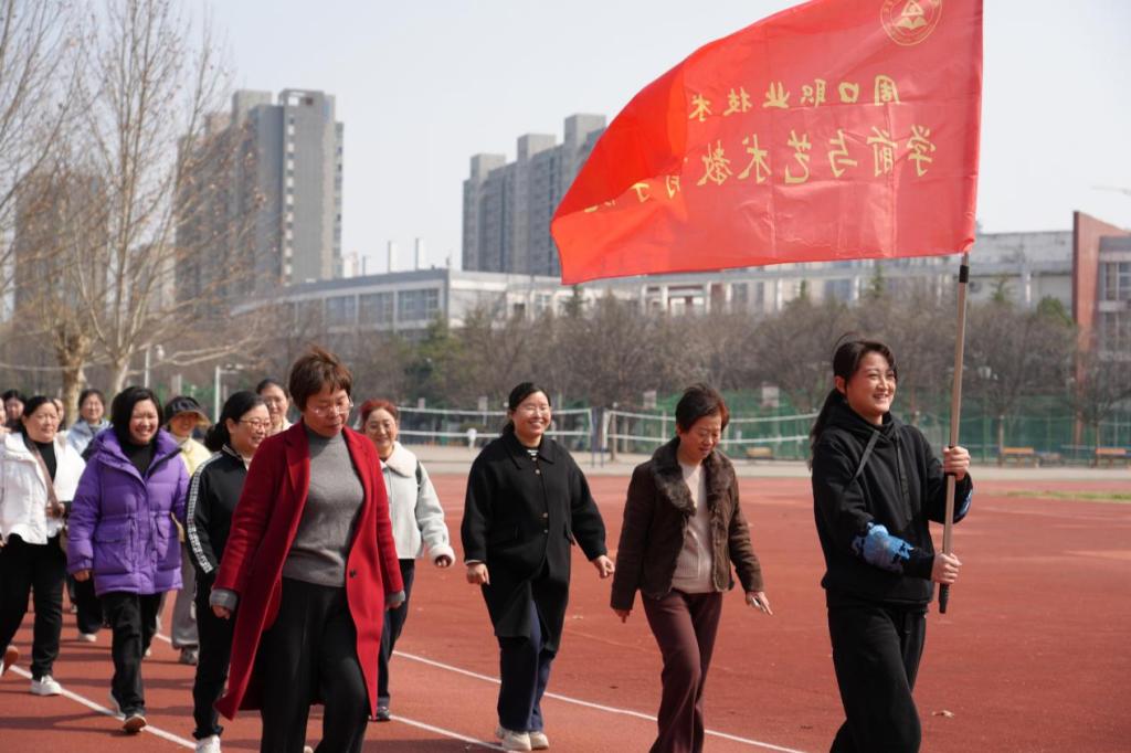 为庆祝第115个“三八”国际劳动妇女节,丰富女教职工的业余文化生活,增强团队凝聚力,3月7日,学前与艺术教育学院(纺织服装学院)在学校操场开展2025女教职工校园健步行活动。周口职业技术学院副校长李秀萍、工会副主席韩凤梅出席活动,学院全体班子成员与四十多位女教职工代表参加活动。活动由学院副院长杨晨主持。