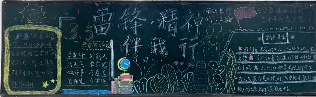 为弘扬雷锋精神,传承红色基因,引导青年大学生深入学习雷锋精神的内涵。3月5日—9日,学前与艺术教育学院(纺织服装学院)开展弘扬雷锋精神主题黑板报系列活动。