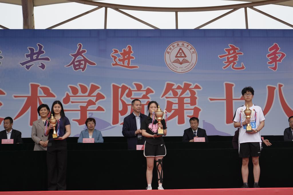 凝聚竞技豪情,点亮赛场星光。4月11日下午,周口职业技术学院第十八届田径运动会在激情与拼搏中完美收官。闭幕式上,我院荣获女子团体总分第三名,并斩获最佳风采奖。