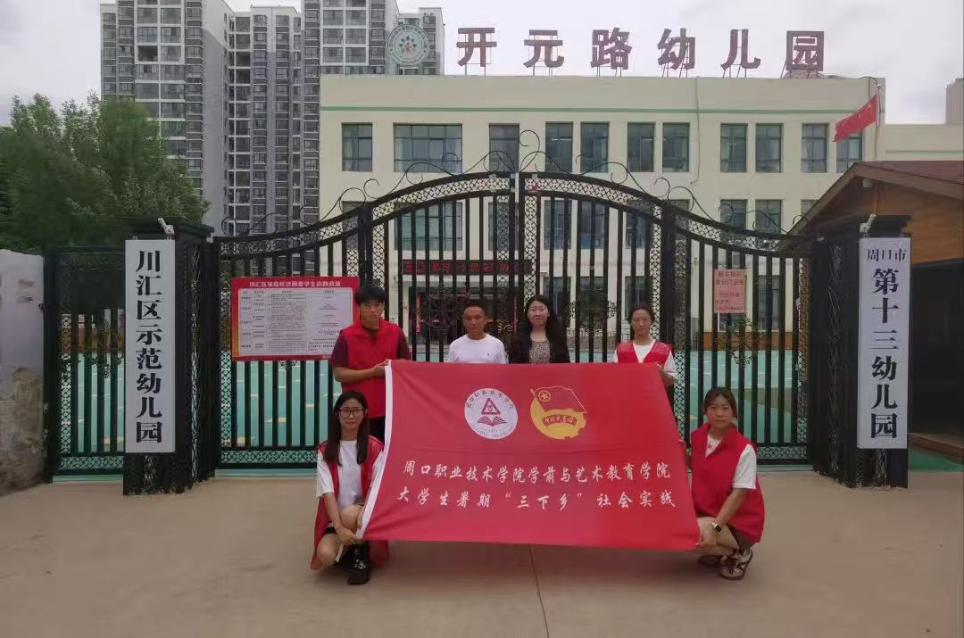为深入学习贯彻习近平新时代中国特色社会主义思想,服务乡村振兴战略,增强青年实践育人实效。7月15日,学前与艺术教育学院(纺织服装学院)团总支书记刘馨馨带领学院“学艺美育”乡村振兴资助宣讲实践团前往周口市开元路第十三幼儿园开展大学生暑期“三下乡”社会实践活动。