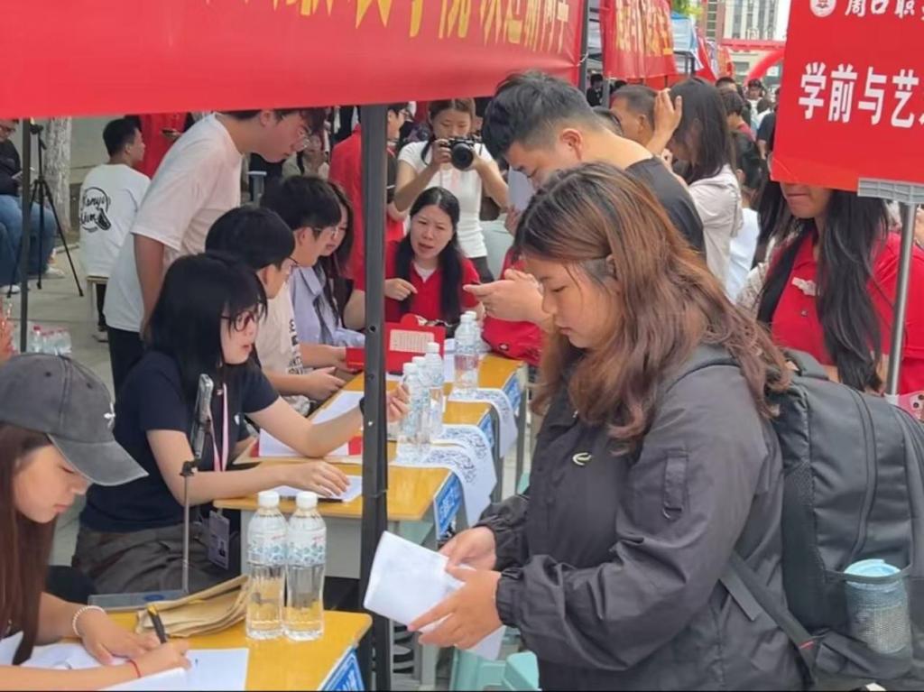 工作人员引导新生至红包墙抽取红包,收获专属入学礼物。这份别具心意的礼物承载着学院的温暖与祝福,让新生在学艺大家庭中感受到喜悦与归属感,为他们的大学生活留下了温馨美好的初印象。