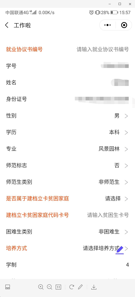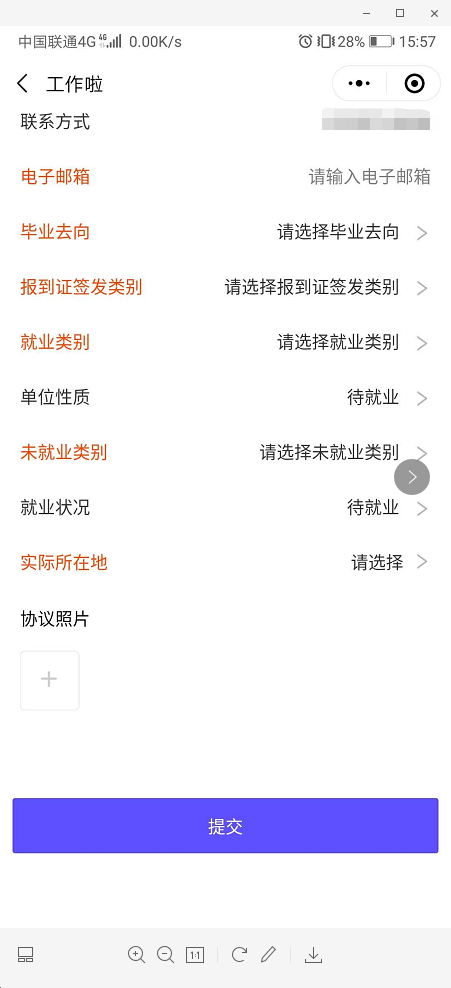 根据提示完善个人信息,完善后点击底部“提交”即可。
