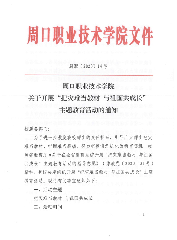 周口职业技术学院关于开展“把灾难当教材,与祖国共成长”主题教育活动的通知