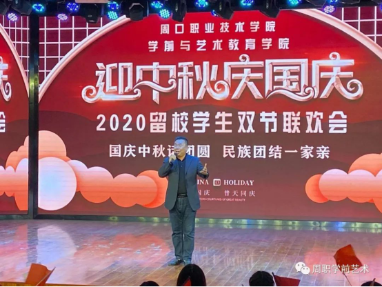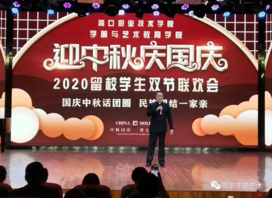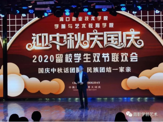 传承家国情怀,弘扬中国精神!国庆中秋,与国同庆,双节喜相逢;故园情、家国情,花好月更圆。10月1日18:30学前与艺术教育学院领导班子带领辅导员老师参加2020留校学生双节联欢会。