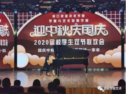 学生代表冯欣乐发言,她的发言代表了所有同学的心声,真的由衷的感谢我们敬爱的领导和老师们。晚会在陈旭老师演唱的《儿行千里母担忧》中拉开序幕,石孟晓老师的钢琴独奏《庙会》,这让我们感受到钢琴如水的旋律;2019级幼儿发展与健康管理一班王妍演唱的《阳光总在风雨后》,唱出了对未来满满的希望;齐楠楠、季梦欣的舞蹈串烧,青春的活力混合着时代的气息,领略舞蹈的魅力;王莉老师演唱的《祝福祖国》,祝愿着我们的祖国繁荣昌盛;刘心瑜老师的钢琴独奏《皮簧》,如行云流水般从指尖倾泄而下,静默地融入血液;2019级音乐教育一班崔峻铭演唱《我》,我就是我,是颜色不一样的烟火;穆院长带来的一首最能打动心灵的经典老歌《月之故乡》,优美的曲调烘托出深远的意境。