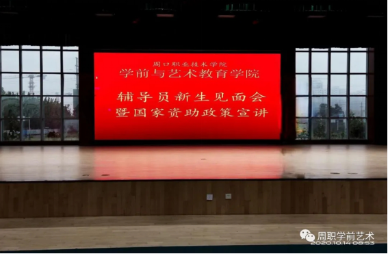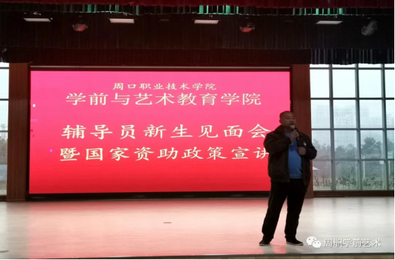 10月14日上午8时30分,学前与艺术教育学院在校体育馆召开2020级新生见面会暨国家资助政策宣讲会,本次活动由学生管理办公室主任崔彤彤主持。