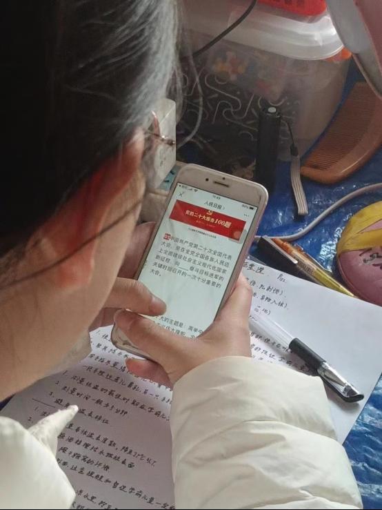 为帮助学生们进一步深入学习理解党的二十大精神,学生们以答题的形式学习百题,加强理论知识。
