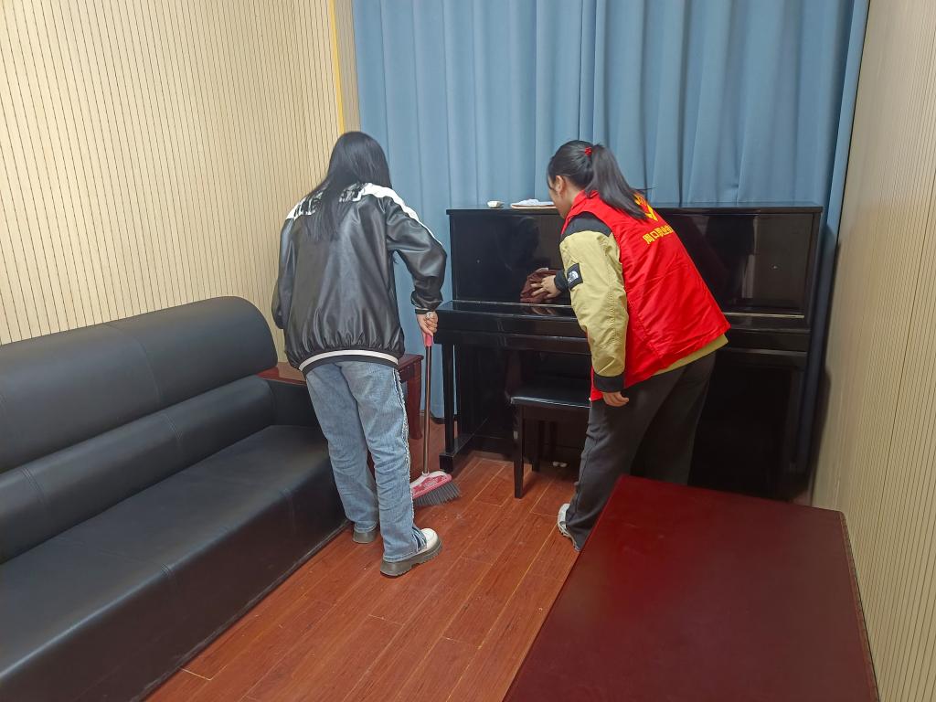 活动中,志愿者们自行分组,分地点进行卫生清洁,认真负责,相互配合,高效合作,仔细打扫每个角落,共同为校园贡献自己的一份力量。
