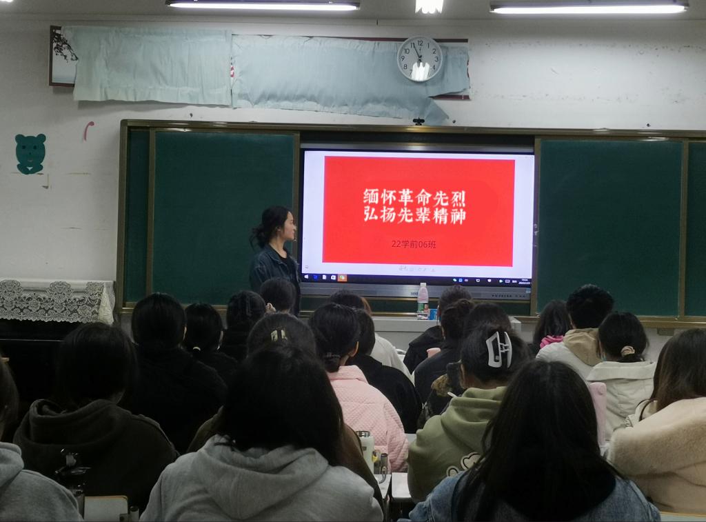 清明节是中华民族一个重要的传统节日,也是一个缅怀和拜祭先人的日子。为进一步了解清明节传统节日的丰富内涵,感受传统文化的魅力,4月3日晚自习,学前与艺术教育学院组织各班召开“缅怀革命先烈,弘扬革命精神”清明祭英烈主题班会。