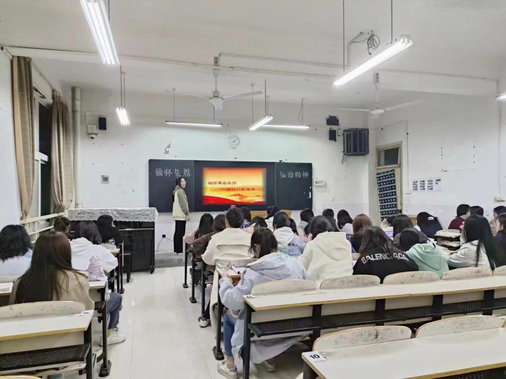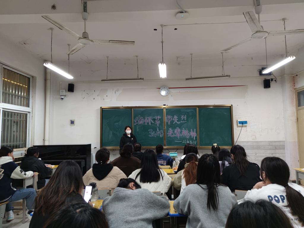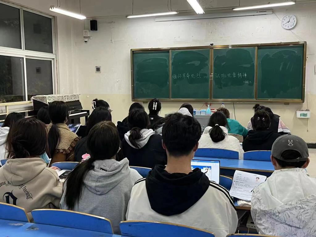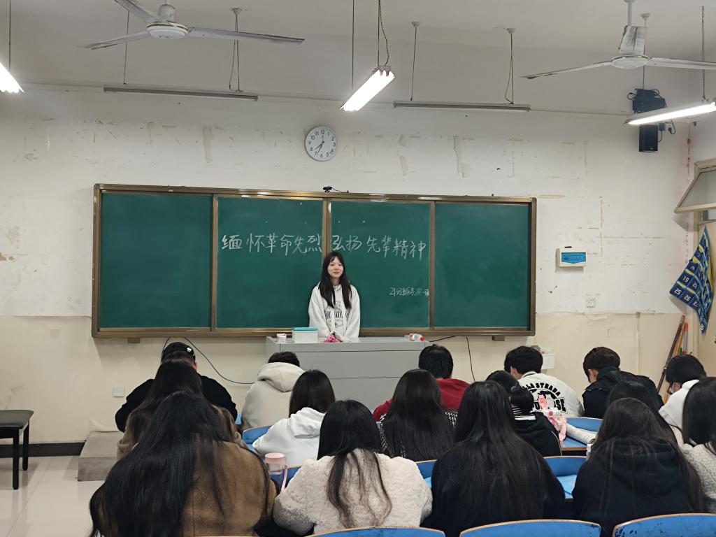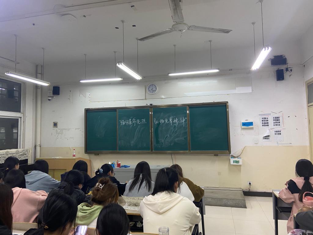 在班会上,各班团支书向同学们讲述那些舍生忘死、不怕牺牲的英勇斗争先烈的故事,引导同学们向先烈学习。