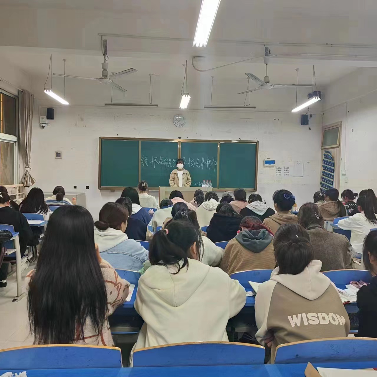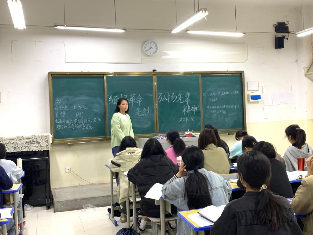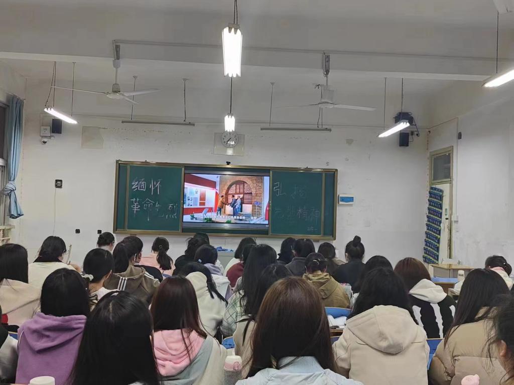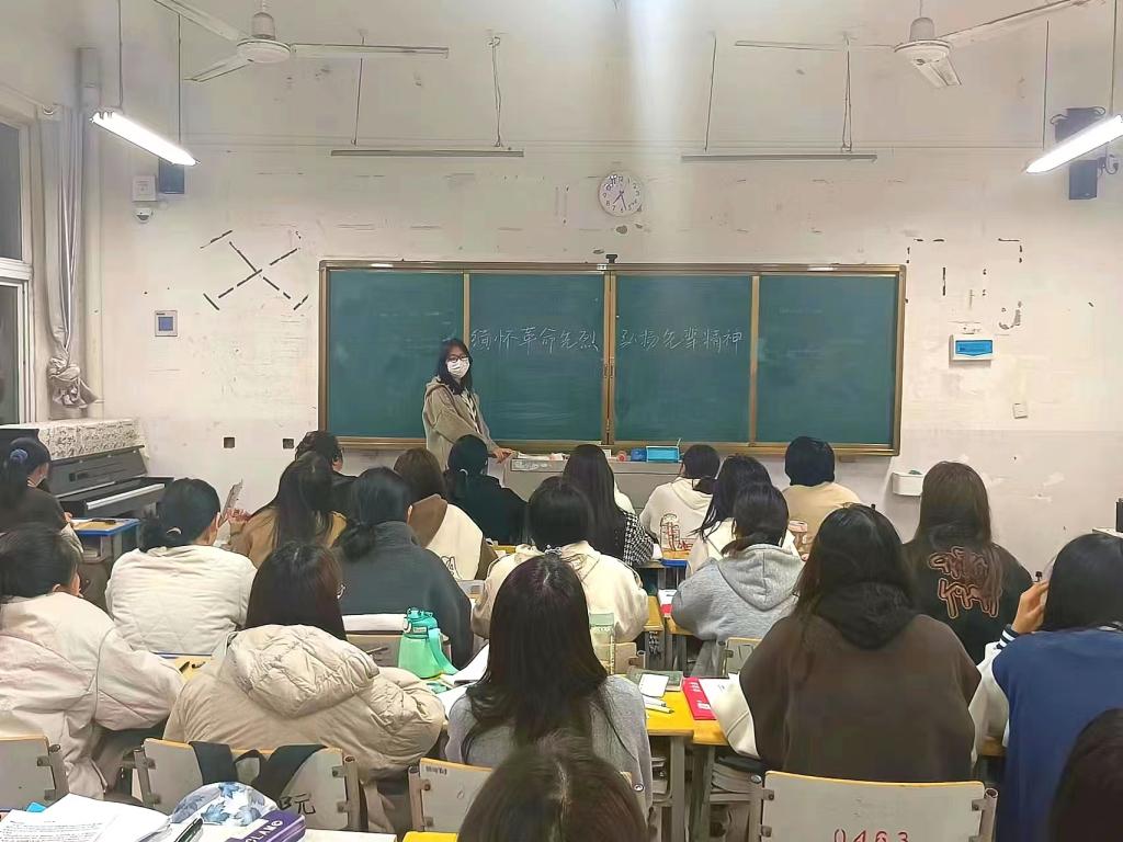 在班会上,各班团支书向同学们讲述那些舍生忘死、不怕牺牲的英勇斗争先烈的故事,引导同学们向先烈学习。