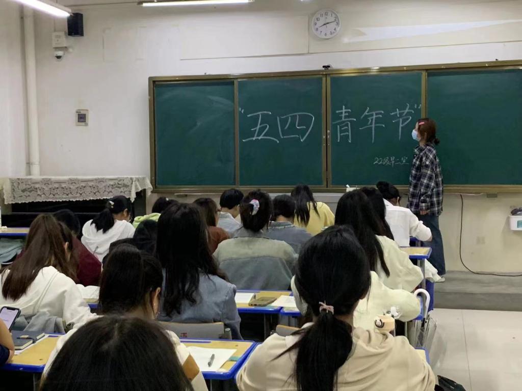 班会上,各班团支书向同学们讲解什么是五四精神、五四精神的时代内涵及具体内容,带大家重新走进那个中华民族觉醒的年代,去感受那些身处乱世却仍满怀爱国热忱的青年学生的赤子之心,并指出,作为新时代青年,要树立自信、自强、坚定不移的信念,担当社会责任,方能不负青春韶华。