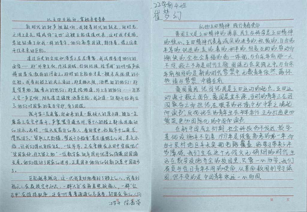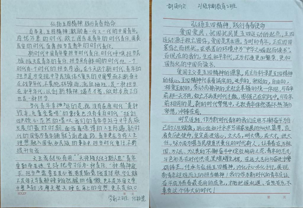 为深入学习落实党的二十大精神,纪念“五四”运动104周年,弘扬五四精神,努力营造昂扬向上、团结奋进的浓厚氛围,5月4日,学前与艺术教育学院开展传承五四精神主题征文活动。学院全体学生参加此次活动。