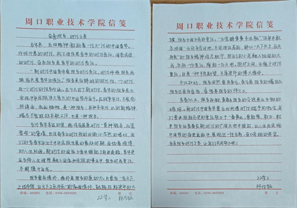 征文作品当中,有的引经据典,书写青年担当;有的抒发感慨,歌颂青春使命……所有作品都洋溢着青春的骄傲、青春的奋斗,展现出学艺学子与祖国同呼吸、共命运的使命担当。