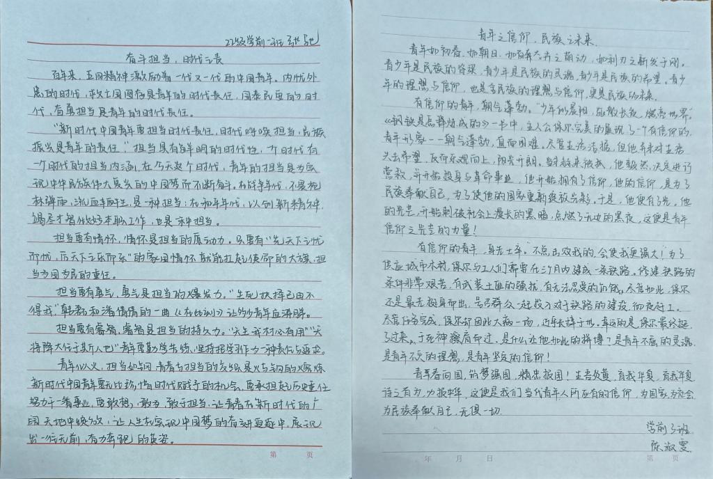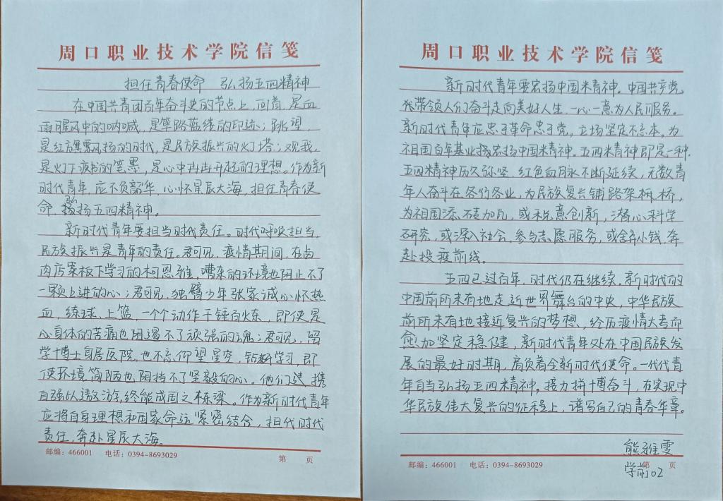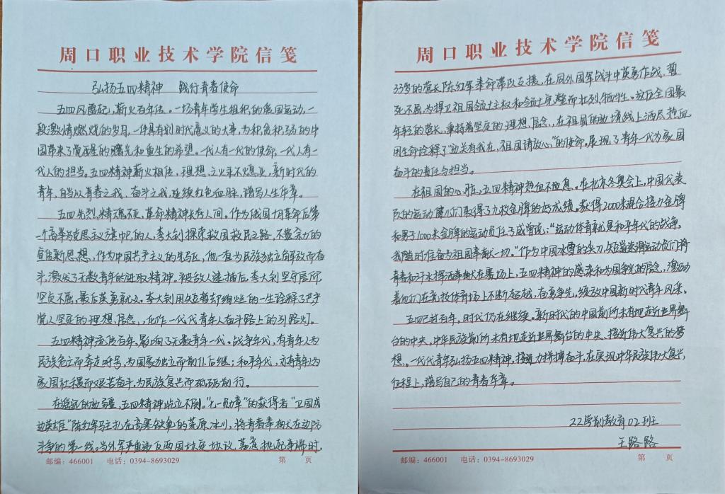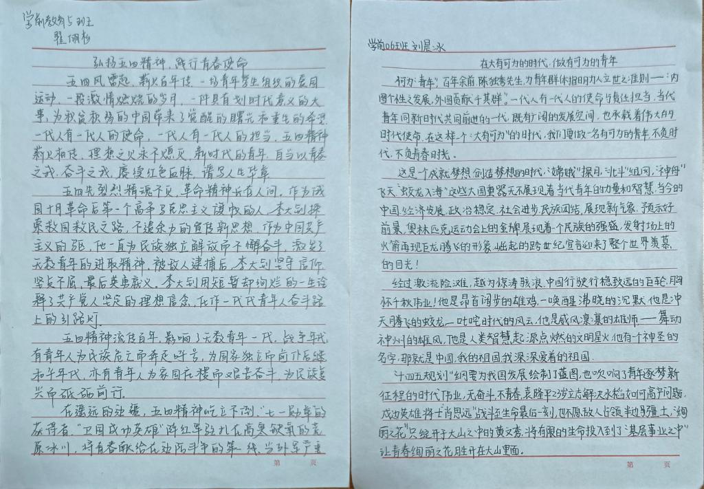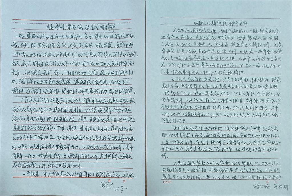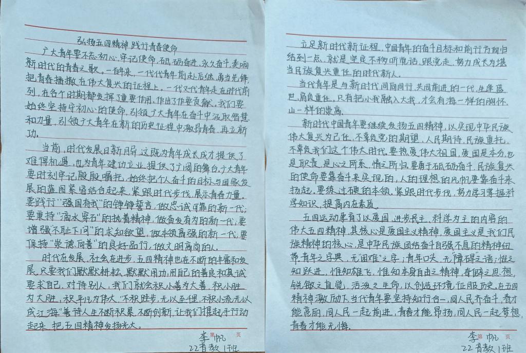 作为新时代青年,我们应当秉承中华民族精神,高举“五四”火炬,用知识与汗水,以满腔热情,去开拓、去创造、去拥抱属于我们的未来!