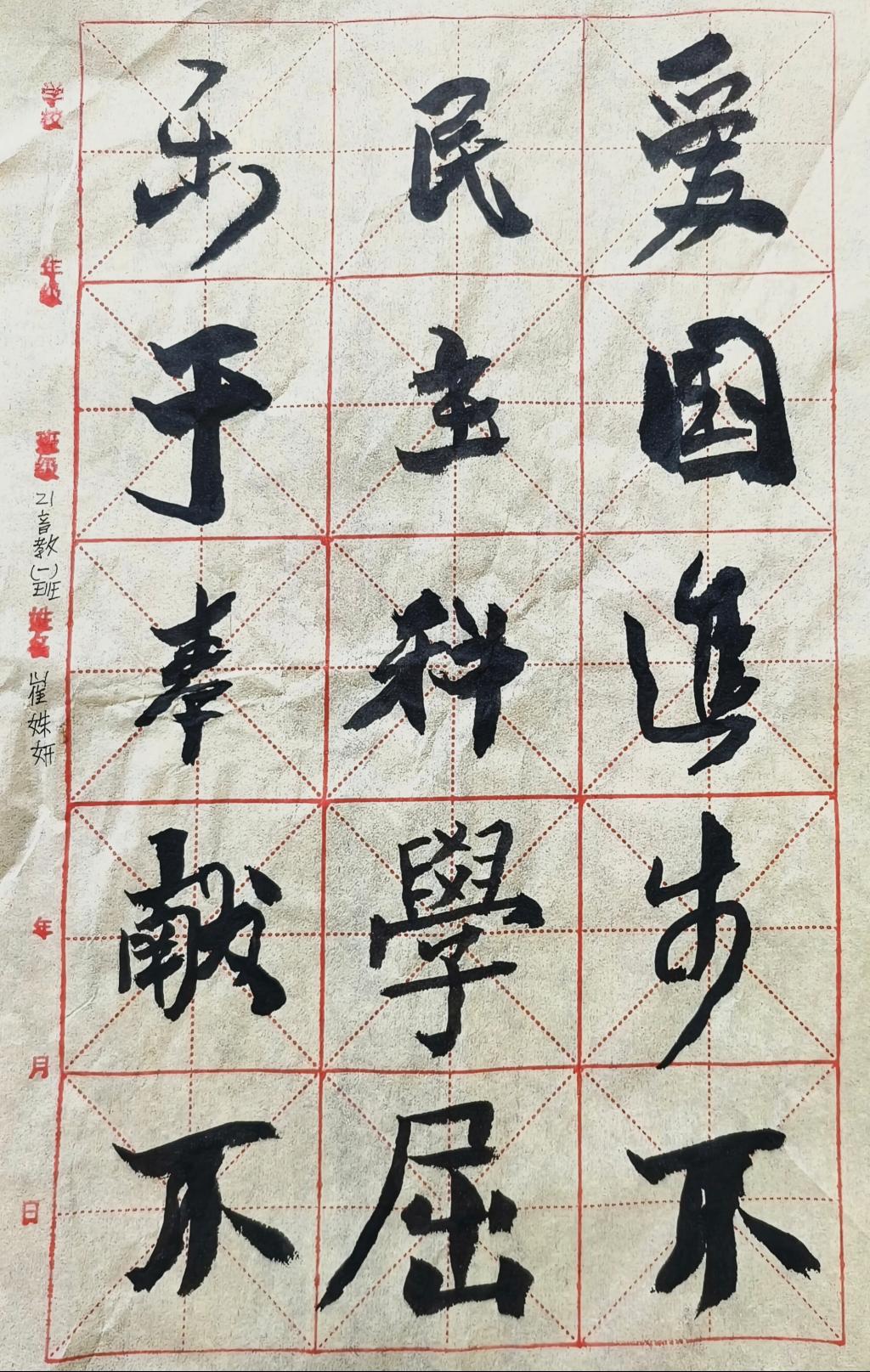 同学们以翰墨言志,用笔书写五四精神,用墨展现青春梦想,每一幅作品都凝聚着同学们对五四精神的感悟,诠释着对五四精神的赤诚。