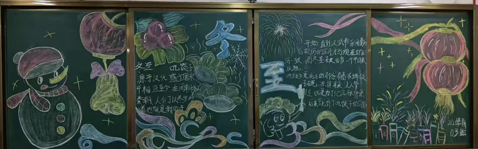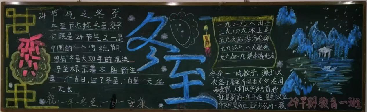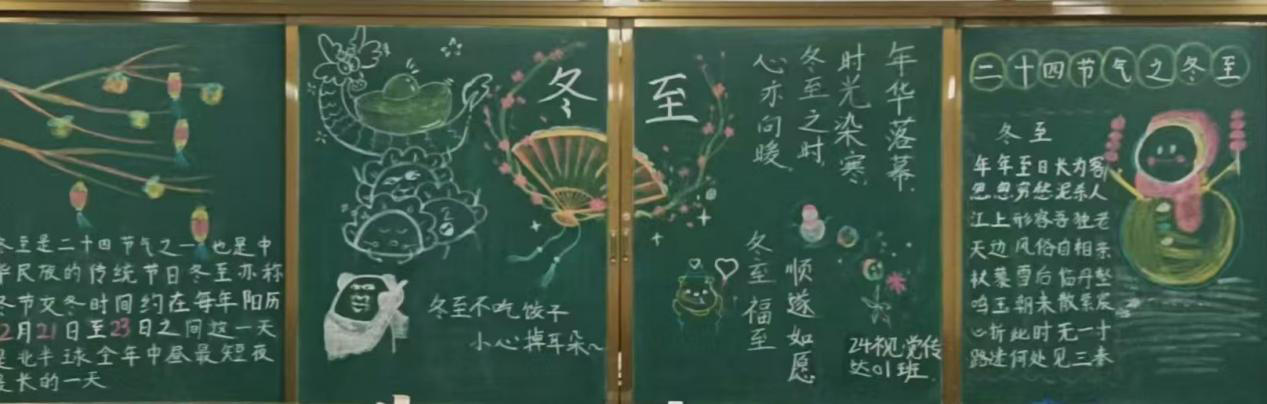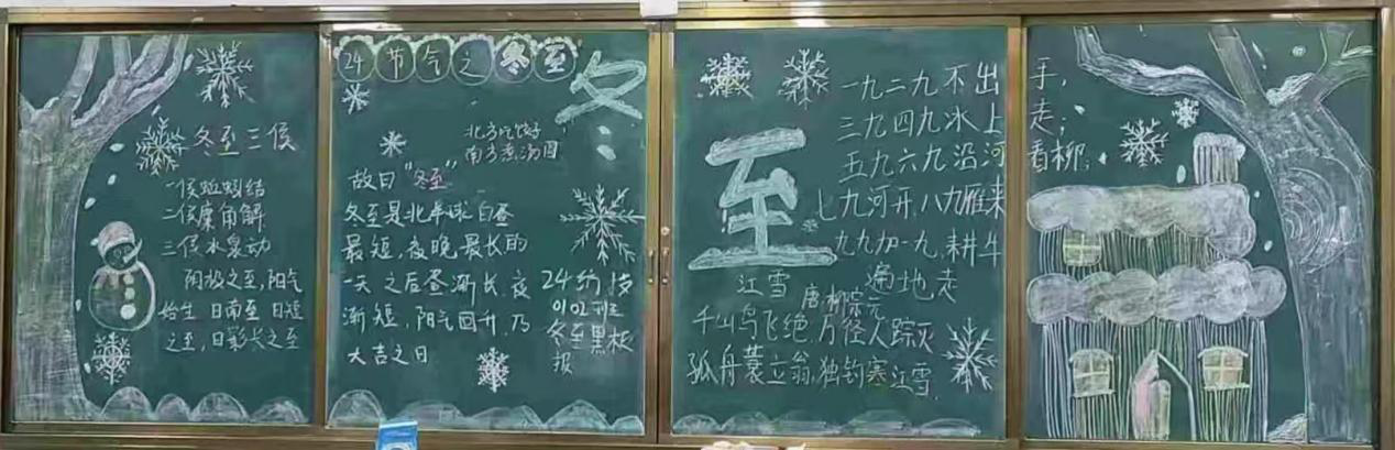 用板报话中国,引领和培育学生爱国家、爱社会、爱家庭的良好品质,通过板报宣传,传递冬至节气的温馨与美好,增强学生的文化自信和文化认同感,为校园的文化繁荣书写浓墨重彩的永恒篇章。