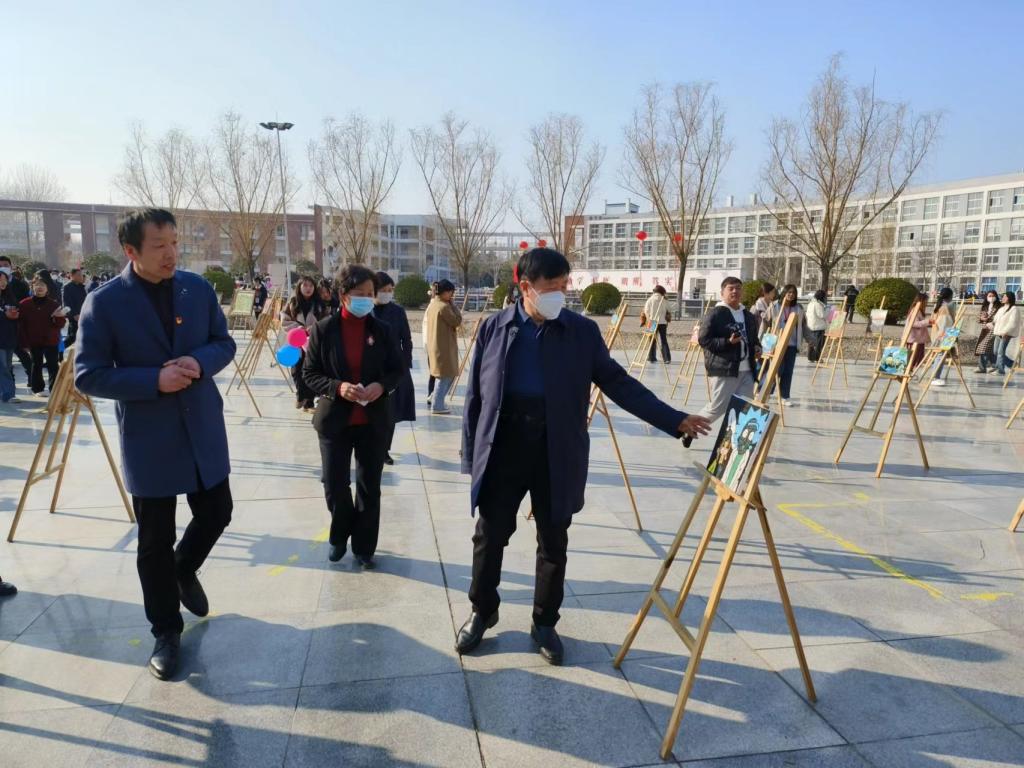 启动仪式结束后,校党委书记刘士欣、副校长李秀萍在学院党总支书记王春生的陪同下,移步到学前与艺术教育学院作品展区进行观展。刘书记边走边看,并与项目负责的学生进行交流,鼓励他们不断钻研进取,呈现更多优秀作品,结合实际,应用创新。