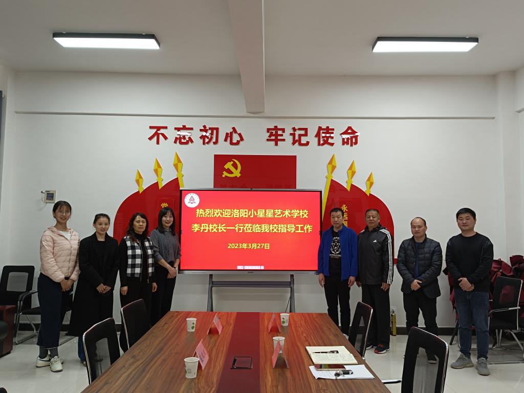 洛阳小星星艺术学校李丹校长一行首先与各学院领导开展交流。学前与艺术教育学院党总支书记王春生、院长高岐奎、文化教育学院党总支书记唐文杰,体育学院院长徐长宇出席交流现场,并对李丹校长一行人的到来表示热烈的欢迎。