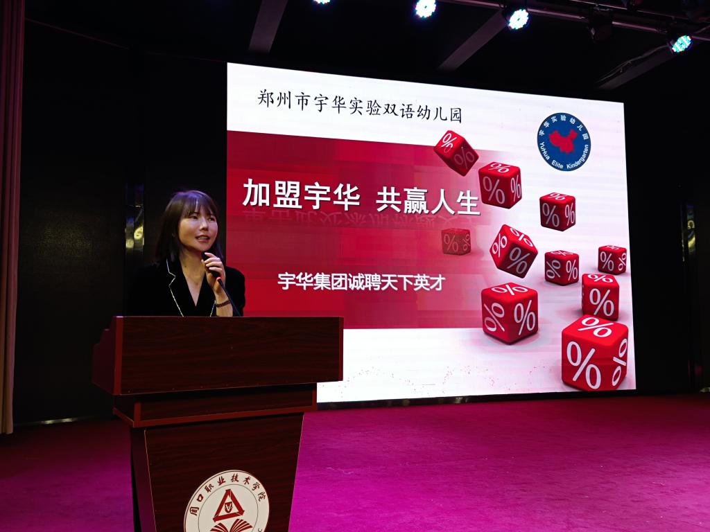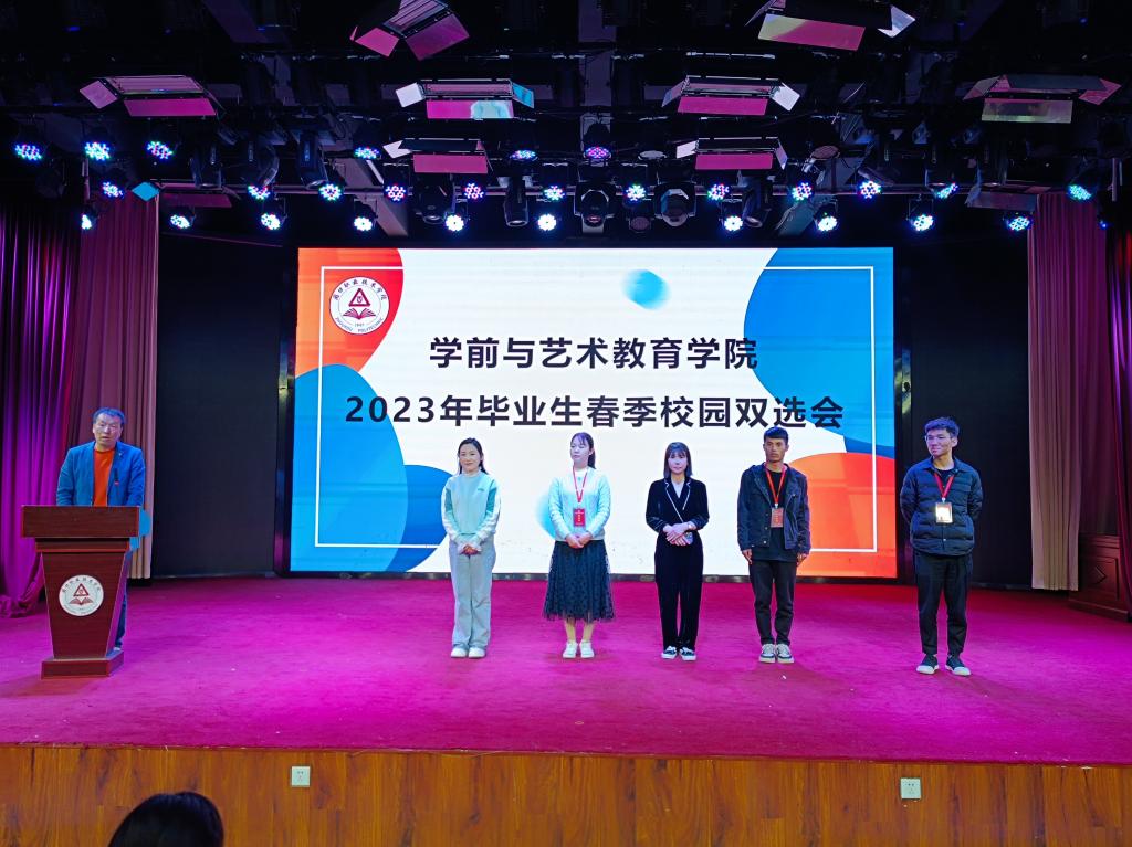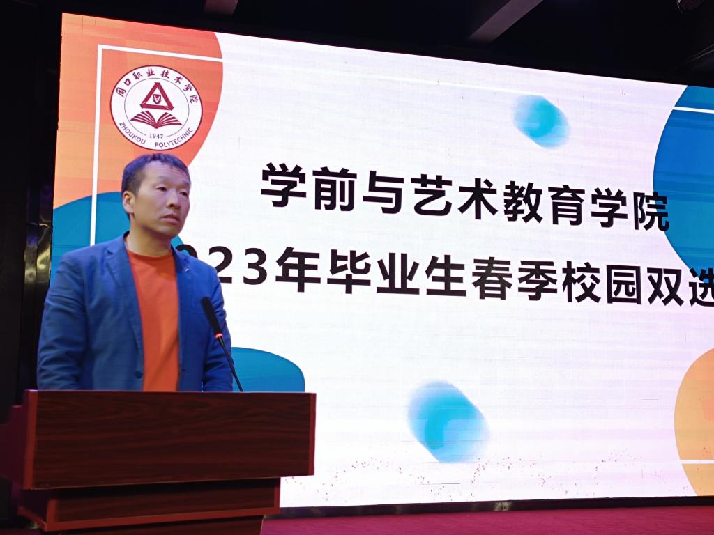 为全面贯彻落实党的二十大精神,实施就业优先战略,强抓春招关键期,保障我院2023届毕业生高质量就业,4月3日下午,学前与艺术教育学院在一楼演播厅召开2023年春季校园专题宣讲会。本次宣讲会共邀请了郑州市郑东新区宇华幼儿园、周口市川汇区希语树创意幼儿园、河南金宝儿童成长咨询服务有限责任公司等六家优质企业参加。宣讲会由党总支书记王春生主持。