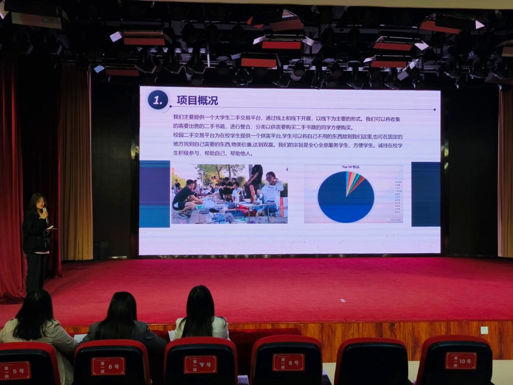 比赛现场,参赛选手通过PPT分享团队的创业理念、介绍创业项目细节,用自信的演讲、清晰的思维向评委老师展示了团队合作的成效。在选手介绍完毕团队的项目之后,同学们与评委老师问答互动,老师们针对其优缺点从技术原创、创新点、经济性及项目后续发展等方面提出了问题并给出了建议,为参赛团队进一步优化项目提供了重要参考。