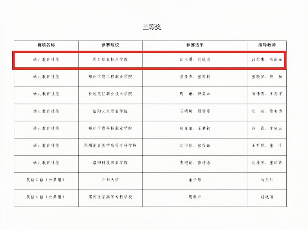 幼儿教育技能赛项获三等奖1项