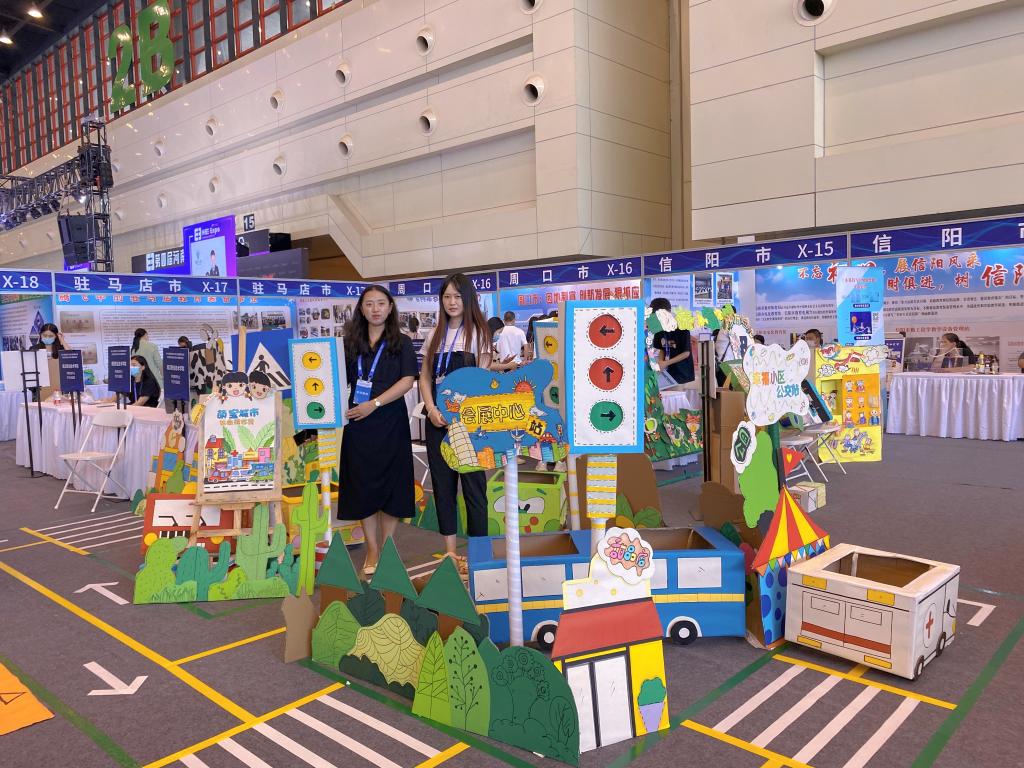 2022年7月29日,在郑州会展中心,由周口职业技术学院学前与艺术教育学院梁思雨、王雪老师指导创作的作品<<萌宝城市>>入选第十九届河南省中小学幼儿园自制教(玩)具暨学生科技创新小制作小发明展评活动。