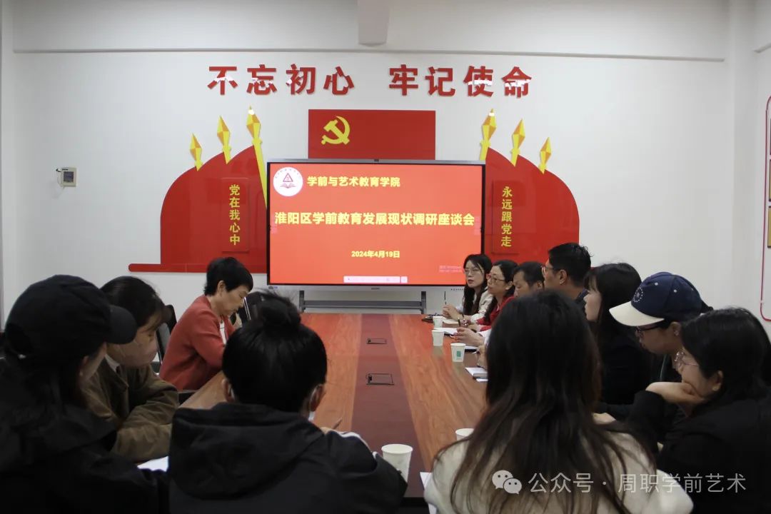 为贯彻党的二十大精神,建设学科发展新格局,提高学前教育学科建设水平,4月19日,学前与艺术教育学院与周口和融实验幼儿园举办淮阳区学前教育发展现状调研座谈会。周口和融实验幼儿园一行来到我院进行交流座谈。学前与艺术教育学院党总支书记王春生、副院长耿润、副院长杨晨、教管办主任李晨阳、学前教研室主任吕维康及学前教育专业教师参加本次座谈会。