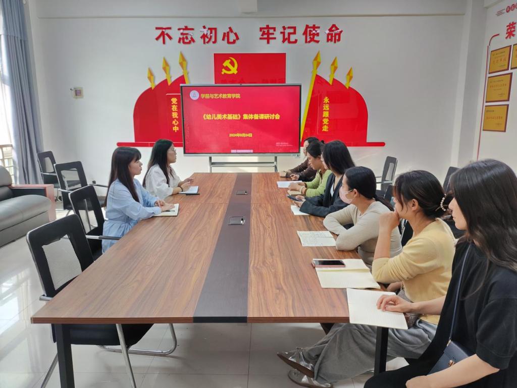 9月24日,周口职业技术学院学前与艺术教育学院学前教研室开展集体备课,本次活动聚焦《幼儿美术基础》《幼儿园环境创设与应用》两门课程。教管办主任李晨阳,教研室主任吕维康及任课教师参加活动。此次集体备课旨在通过教师间的深入交流与探讨,优化教学内容,创新教学方法,进一步提升教学质量,为学生提供更加丰富、实用的学习体验。