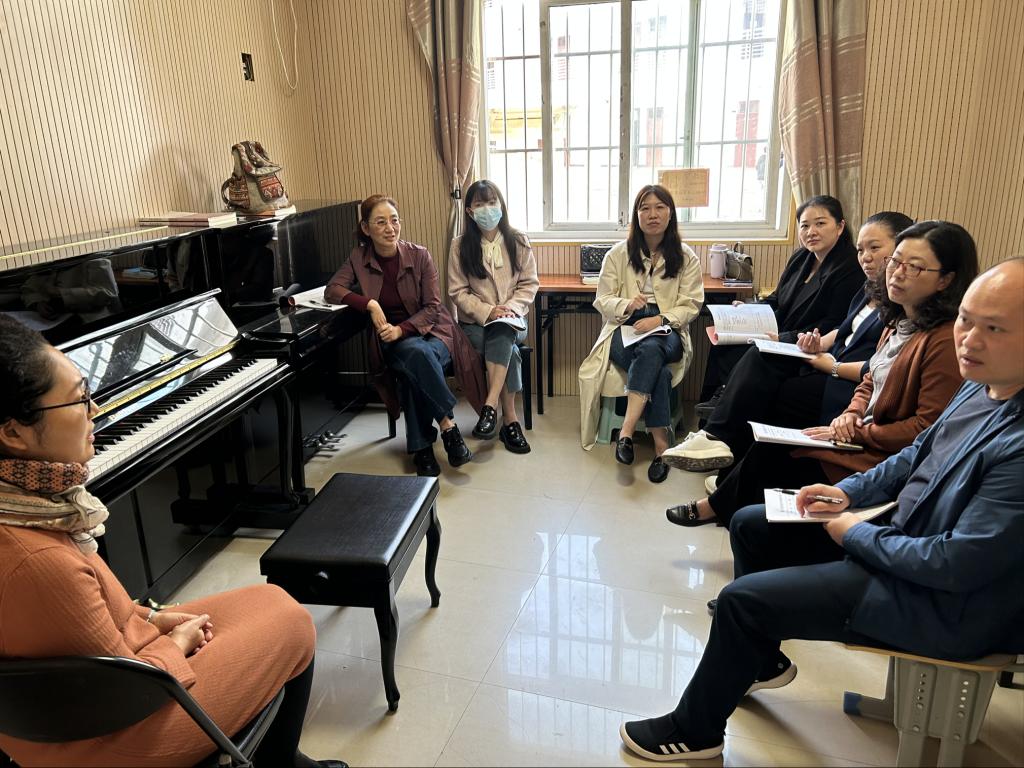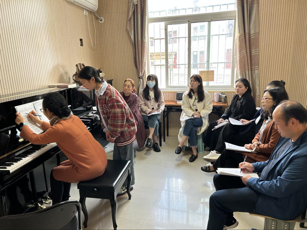 为推进音乐专业教研室全体教师教学质量的发展,提升青年教师自身教学水平,2023年10月20日下午,学前与艺术教育学院院长高岐奎、副院长耿润、教学办主任李晨阳、音乐教研室主任刘楠,以及音乐教研室全体教师进行了集体听评课——器乐演奏(钢琴),由钢琴教师史书园老师进行授课,教研室全体教师共同参会。