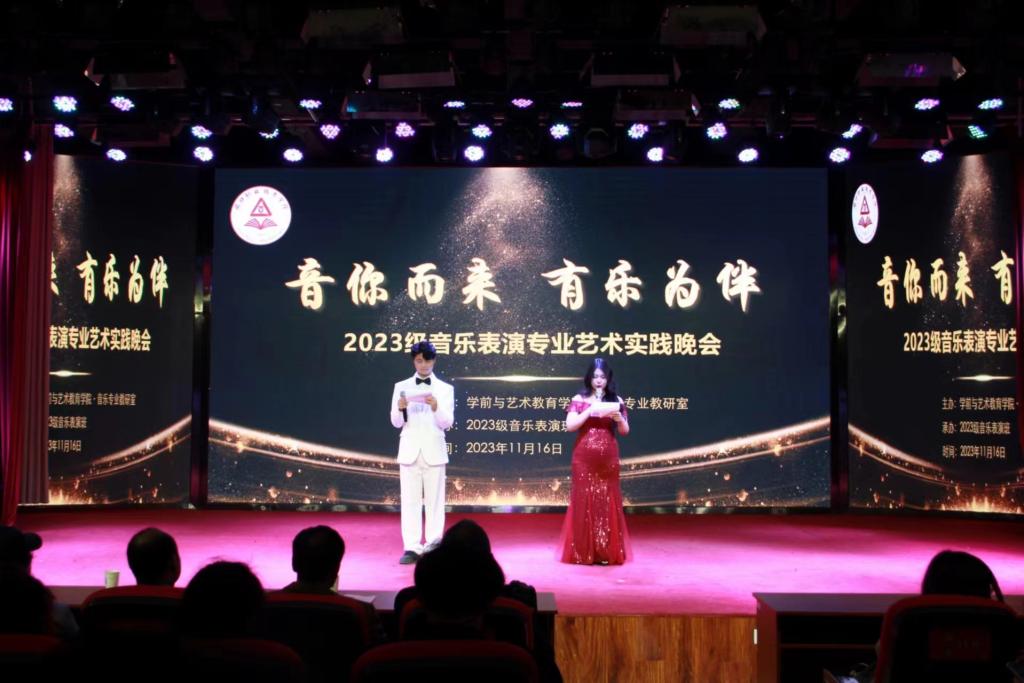 为推动校园⽂化建设,搭建艺术实践的舞台,展现学生艺术风采,促进学生全面素质发展,11月16日晚上,学前与艺术教育学院在艺术演播厅举办2023级音乐表演专业艺术实践晚会。学前与艺术教育学院党总支书记王春生、院长高岐奎出席晚会,学院领导班子成员、教师代表、音乐表演专业学生代表一同观看晚会。
