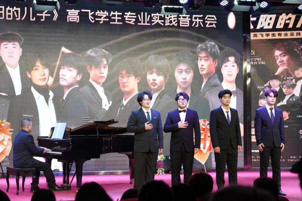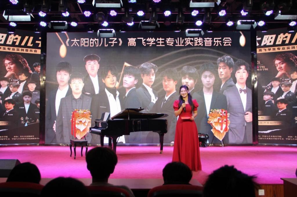 12月4日晚,“太阳的儿子”——高飞学生专业实践音乐会在艺术演播厅成功举办。本场音乐会由学前与艺术教育学院音乐表演教研室主办,我院声乐专任教师高飞指导,马希宝老师、赵俊辉和李逸思同学担任艺术指导。特邀周口市人力资源和社会保障局退休干部陈志伟,周口师范学院体育学院原党委书记、教授、退休干部李志杰作为串场嘉宾,与学生共同在音乐会上放歌,以歌传情、绽放风采。