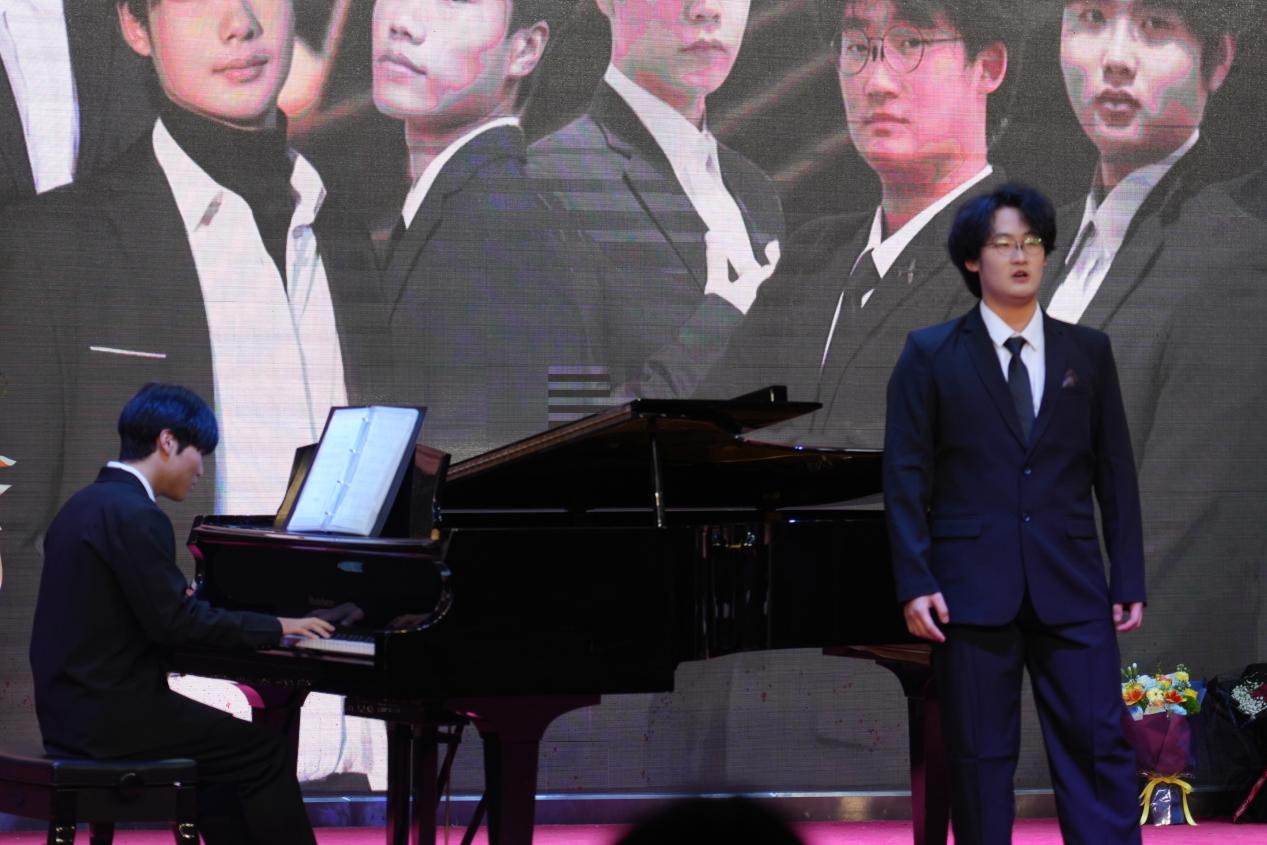 本次音乐会共有15个节目。在《秋风词》悠扬的旋律中,音乐会正式拉开帷幕。随后特邀嘉宾与同学们依次登台为我们带来了《天路》《我爱你中国》《青玉案·元夕》《两地曲》和《老师我想你》等一系列精彩的歌曲表演,充分彰显了音乐表演专业学生扎实的专业素养与功底。